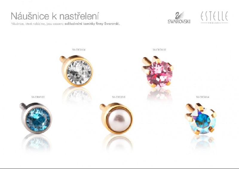 Výběr náušnic Estelle je veliký, Náušnice Estelle neobsahují alergizující prvky – zejména nikl. Jedná se o výrobky z chirurgické oceli leštěné bíle či pozlacené 24kt. zlatem. Náušnice mají uzávěr dříku ve formě puzety vyrobené z chirurgické oceli. V případě pozlacených náušnic je pozlacená i puzeta.